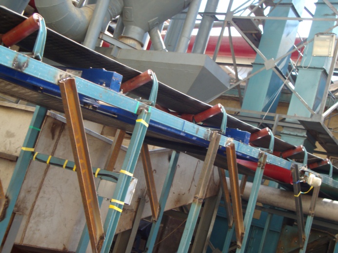 ICS14型稱重橋架裝有四組或三組托輥,兩個橫梁上吊有四只稱重傳感器對稱重橋架提供支承,靠2組拉桿來保持位置,這種裝置不防震,秤體橫面過大造成積料,秤體抗偏載能力差(皮帶跑偏對其精度和穩定性有致命影響)。